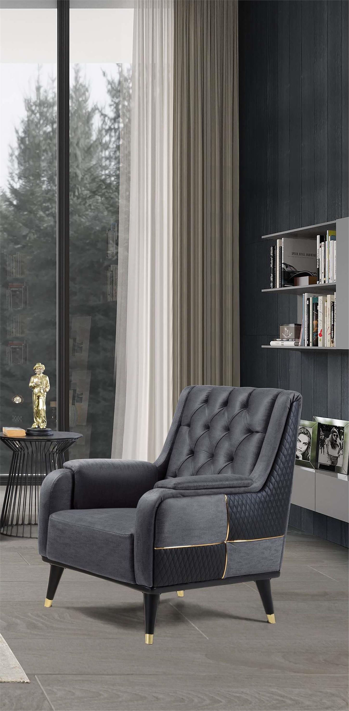 Bu berjer, Chester, lüks ve rahatlığın mükemmel bir birleşimidir. Göz alıcı siyah rengi ve zarif tasarımı, her türlü yaşam alanına sofistike bir dokunuş katıyor. Özenle tasarlanmış, kapitone sırt detayı ve altın rengi detaylarla süslenmiş kenarlar, klasik ve çağdaş stilin harmanlandığı bir şıklık sunuyor.
